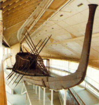 Een boot waarmee de dode koning Re op zijn reis door de hemel zou vergezellen.