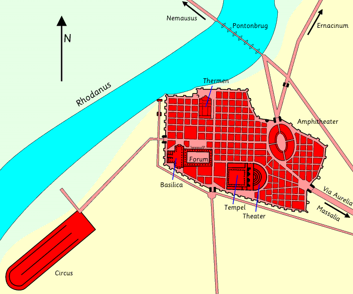 Arelate, belangrijke romeinse stad in gallia Narbonensis, aan de oostelijke oever van de Rhône, ca. 75 km ten noordwesten van Marseille; thans Arles. De griekse kolonie Massilia bezat sinds de 6e eeuw vC op de plaats van het latere A. een binnenhaven en factorij Theline, die in betekenis toenam toen Gaius Marius ca. 100 vC door de aanleg van een kanaal, de z.g. fossae Marianae, een betere verbinding met de Middellandse Zee tot stand bracht. Na de verovering van Massilia (49 vC) stichtte Julius Caesar in A. een romeinse kolonie en schonk deze het grootste deel van het gebied van Massilia. Uitgebreid door Octavianus, werd colonia Iulia Paterna Arelate Sextanorum, waar bovendien de grote verbindingsweg van Italië naar Spanje de Rhône kruiste (schipbrug), weldra het belangriikste commerciële centrum van ZuidGallië en bleef dit gedurende de gehele keizertijd.