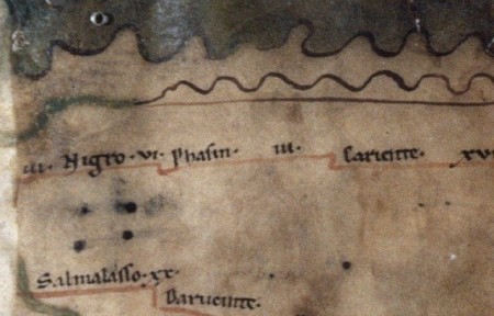 van het huidige Poti, is niet bekend. Op de Peutinger kaart (foto rechts: midden links) wordt P. Phasin genoemd.
