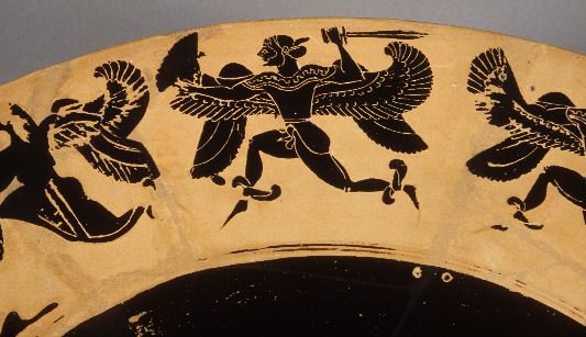 Zetes achtervolgt de Harpijen (Schaal uit ca. 530 vC, M.von Wagner Museum, Würzburg) |