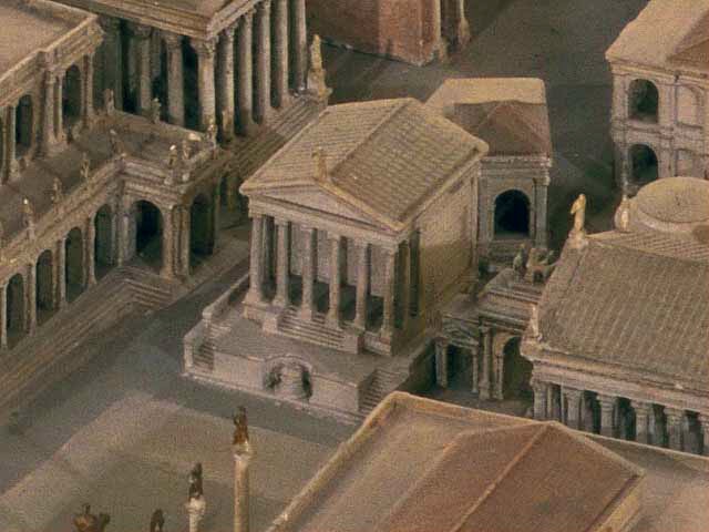 Midden in de cella van de tempel stond een standbeeld van Iulius Caesar