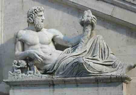 en Nijl) liggen nu aan weerskanten van de trap van het Senatorenpaleis op het Capitool. Eerder lagen ze nog niet naast elkaar. Terug.