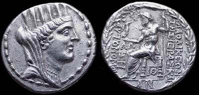 Munt van Laodicea 50 vC, Tyche l., Zeus r. |