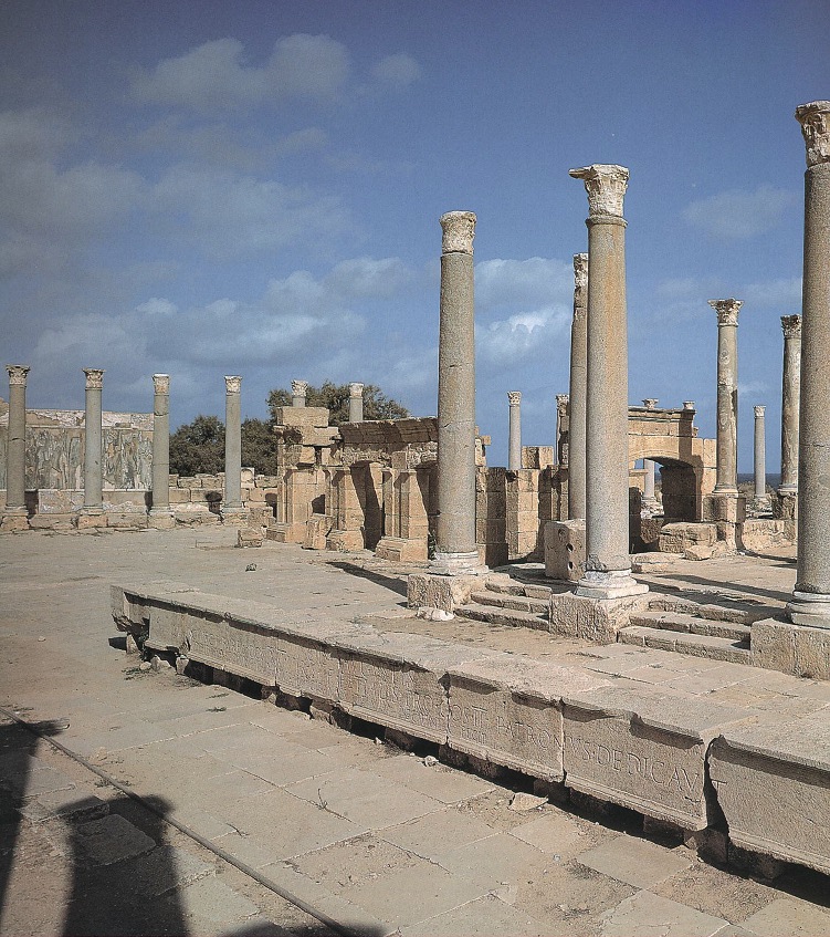 Dit is de Porticus post scaenam van het theater. In het midden staat de tempel van de Dei Augustales.