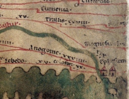 Istanbul bevindt. Op de Peutinger kaart (foto rechts: midden boven) wordt T. Trallis genoemd.