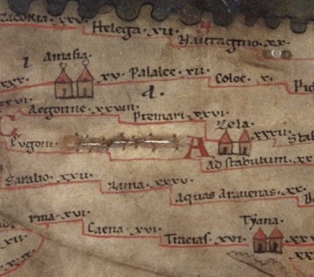 bogen overeind staan. Op de Peutinger kaart (foto rechts: rechtsonder) wordt Tyana ook vermeld.