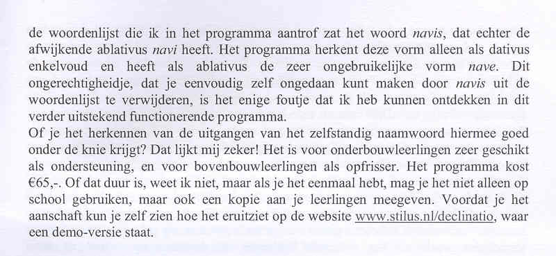 Voor scholen en andere niet-individuen kost DECLINATIO € 100,-. In dit geval stuur ik het programma per mail. Wil je het programma op een cdrom opgestuurd hebben, dan bedragen de extra kosten voor de cdrom € 10,-.