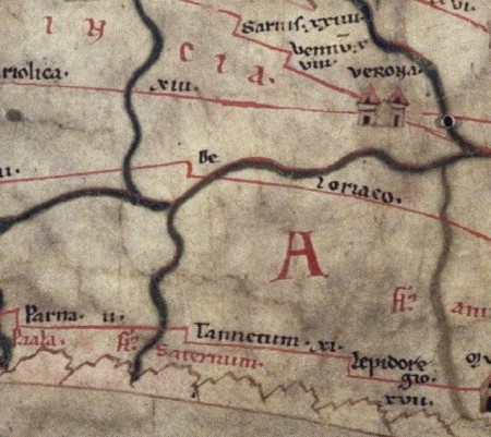 getuigen evenwel van een zekere welvaart. Op de Peutinger kaart (foto rechts: linksonder) staat P. vermled als Parna.