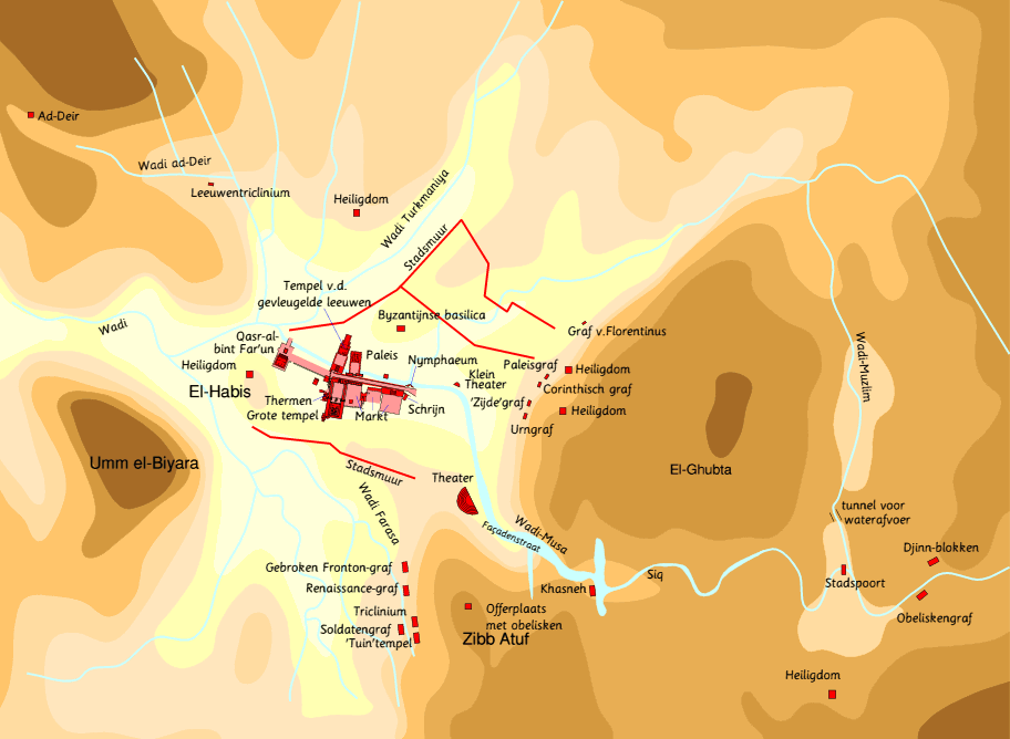 Petra (Πέτρα, nabateese naam Raqmū), hoofdstad van het