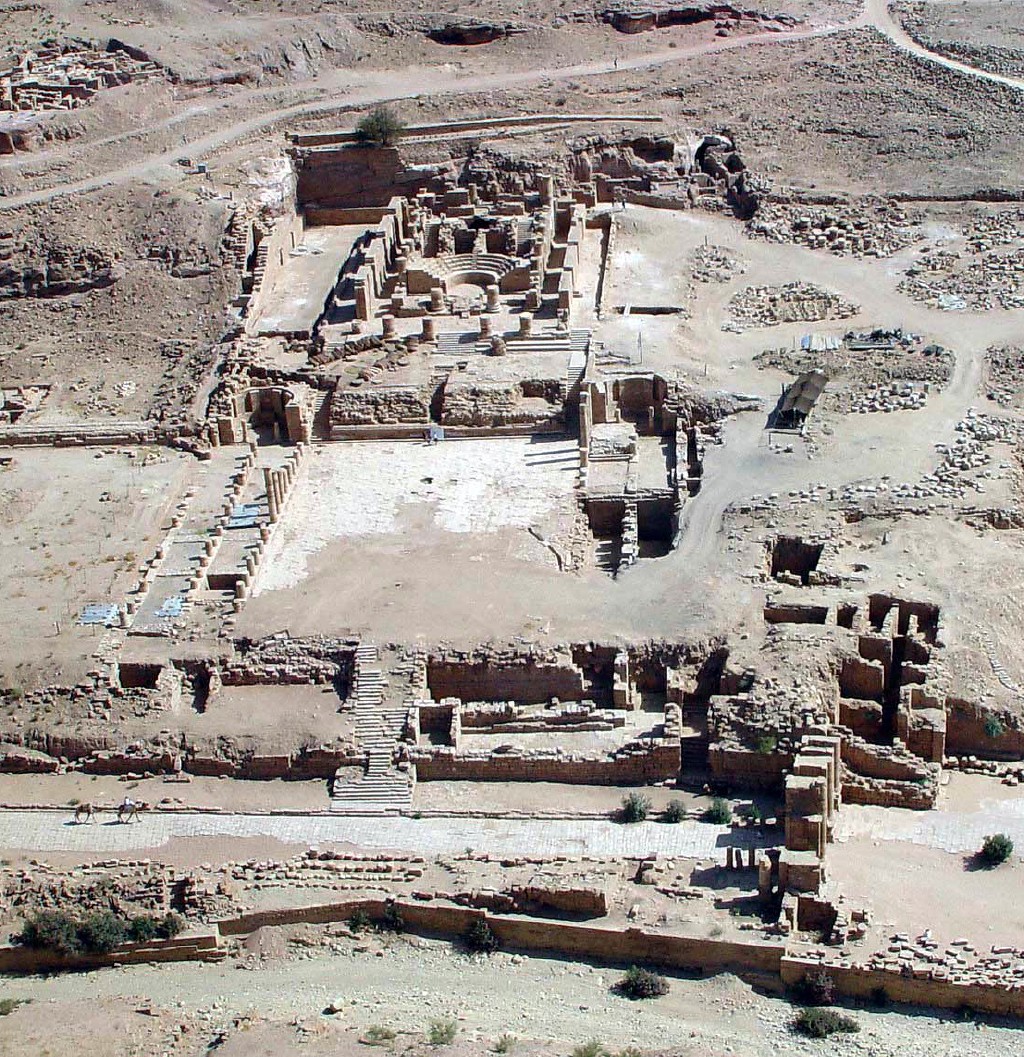 Bij de westelijke exedra werd een kapiteel gevonden, versierd met Aziatische olifantenkoppen; naast duizenden fragmenten werden er munten, lampen, romeins glas en keramiek o.a. figuurtjes, Nabateese schalen, kleine koppen en kruikjes. Uitgewerkte bloemenfriezen en acanthuskapitelen suggereren dat de tempel in het begin van het laatste kwart van de 1e eeuw vC werd gebouwd door de Nabateeën die hun eigen tradities combineerden met de grieks-romeinse. Het complex werd in de 1e eeuw nC vergroot. De grote tempel was in gebruik tot in de 5e eeuw nC., de Byzantijnse periode.