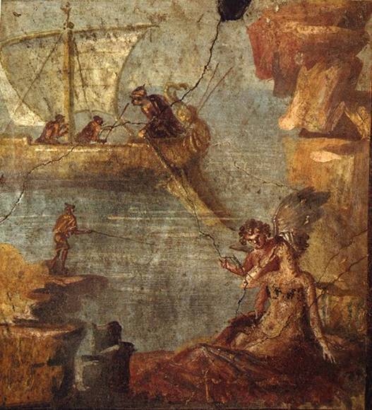 Ariadne ziet Theseus vertrekken op een fresco geschilderd in de 4e stijl.