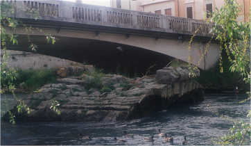 uitgezonderd wat resten van de Velinobrug (onder de huidige moderne brug).