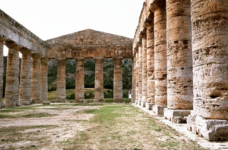 Hier is goed te zien dat de tempel niet af is: de cannelures in de zuilen ontbreken, er is geen cella.