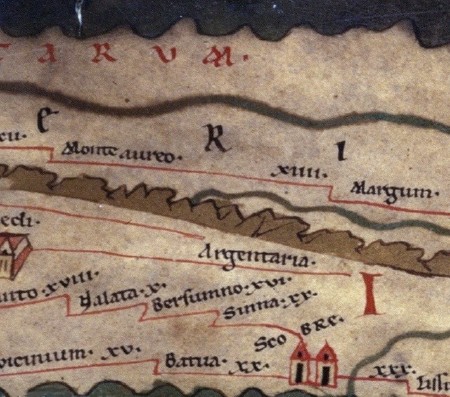 Dyrrhachion. Op de Peutinger kaart (foto rechts: rechtsonder) wordt Scodra Scrobre genoemd.