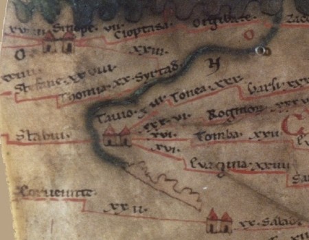 Sarapis?). Op de Peutinger kaart (foto rechts) staat S. linksboven.
