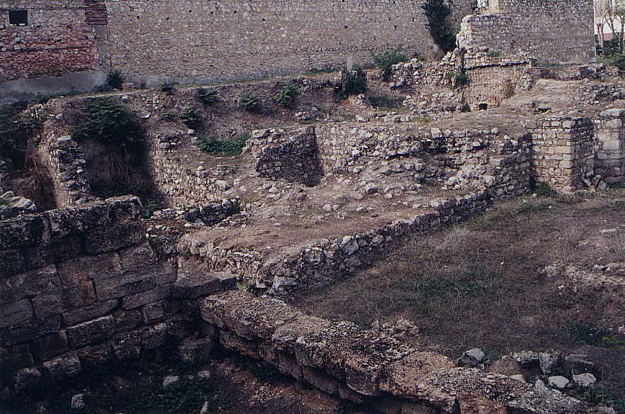 aan zee gelegen Pyrasus. Van de stadsmuur, die een
