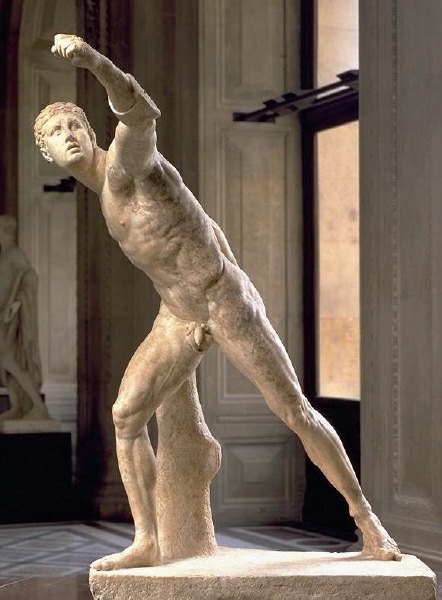 in het Louvre (zie foto hiernaast). De marmeren naakte figuur, die een