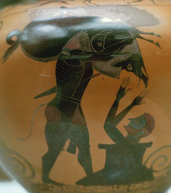 nam hij het op zijn schouders en droeg het levend naar Mycene.