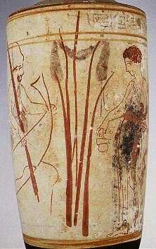 bij de S.). Op deze lecyth staat Charon (links) in zijn bootje