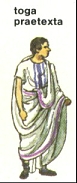 smalle purperen rand voorziene toga praetexta, die zij
