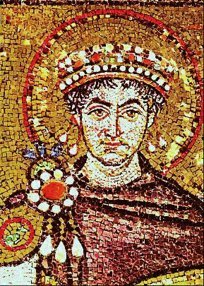 Iustinianus, keizer van het Oost-Romeinse rijk (527-565), stamde uit eenvoudige familie. Hij was de opvolger van zijn oom Iustinus. In 532 kostte een oproer in het circus hem bijna zijn troon. Zijn vrouw Theodora, een voormalige cabaretartiste, redde door haar kordate optreden de situatie door hem ervan af te houden te vluchten. Ook overigens deed zij haar invloed gelden op zijn regering. Dank zij een reeks succesvolle campagnes wist Iustinianus, geholpen door zijn generaals (speciaal Belisarius), voor korte tijd de eenheid van het Romeinse rijk (Theodosius) te herstellen. Door onderdrukking van ketterij werd ook aan de kerk eenheid opgelegd. Tijdens zijn regering werd de Aya Sofia (Hagia Sofia) te Constantinopel en de San Vitale te Ravenna gebouwd. Het belangrijkst in zijn betekenis voor latere tijden is echter het onder zijn regering tot stand gekomen Corpus Iuris. Iustinianus' persoonlijkheid en optreden zijn door Procopius lasterlijk vervalst, hoewel de keizer inderdaad ernstige karakterfouten bezat, met name ijdelheid en wantrouwen (zie Belisarius).