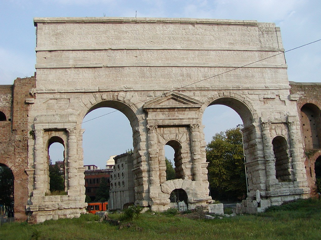 de bogen van de porta Maggiore heen. Deze poort is pas bij de bouw