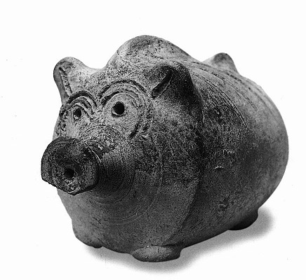 Baby's krijgen natuurlijk een fles, maar soms was deze tegelijk speelgoed zoals dit varkentje.
